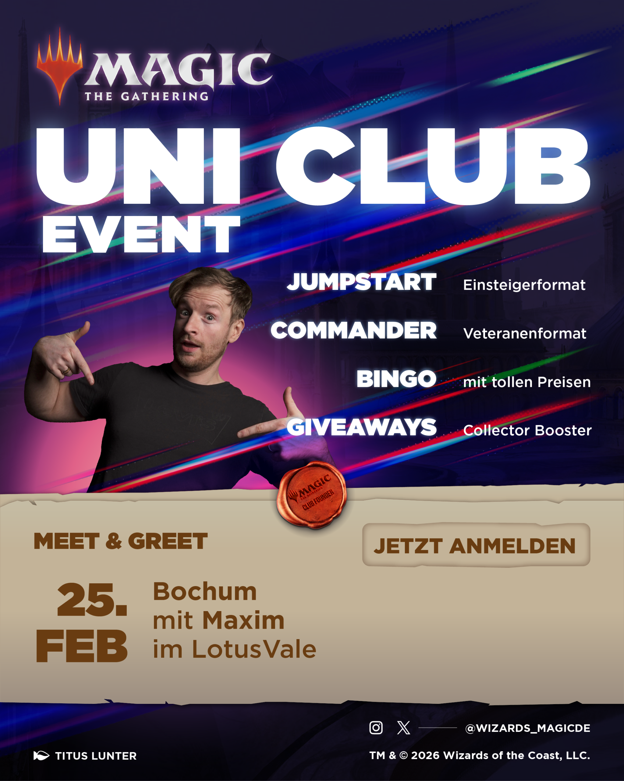 Magic: The Gathering Game Night mit Maxim im LotusVale. Spielt Commander oder Jumpstart. Absolviert das Bingo und gewinnt Preise.
